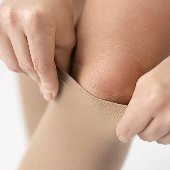 - Градуированная убывающая компрессия от лодыжек до бедра
